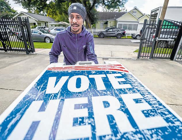 Allen Whiteheaddeliversvoting machines and signstoHarriet TubmanCharter School in