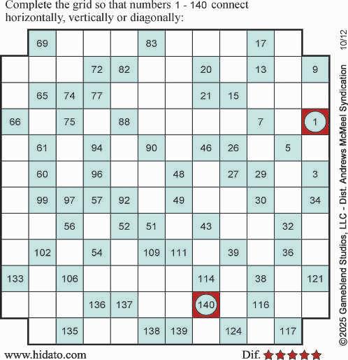 directions: Complete thegridso that numbers 1–132 connect horizontally, vertically or diagonally