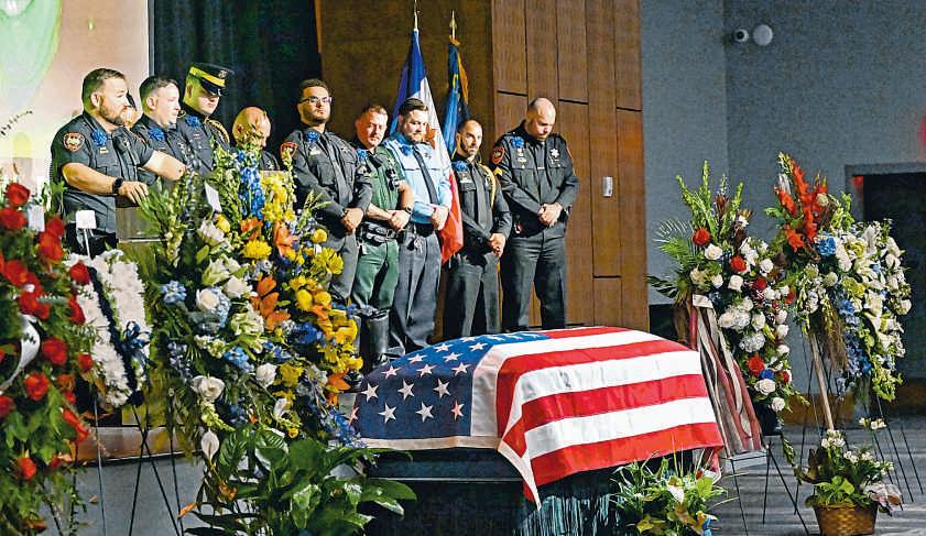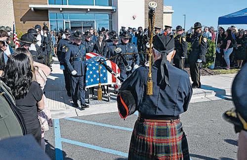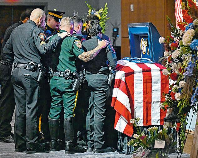 Hundreds of people — officers and members of the public alike gathered inside the PACE Center on Monday to pay tribute to Riley The casket was draped with an American flag, a symbol of Riley’s status as a Navy veteran.