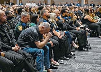 Former squad mates of Iberville Parish sheriff’s Deputy Charles Riley gather to say their final goodbyes during his funeral services on Monday at the PACE Center in Gonzales.