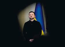 Ukraine’s President Volodymyr Zelenskyy listens Monday as High Representative of the European Union for Foreign Affairs and Security Policy Kaja Kallas speaks during a news conference in Kyiv, Ukraine.