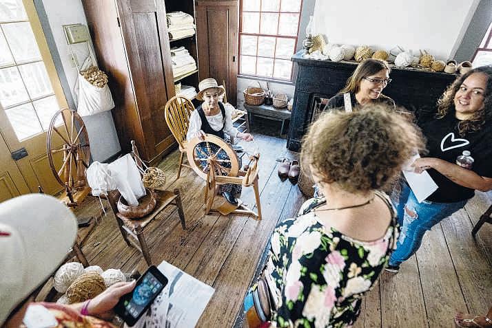 Marlene Doucet speaks to guests about cotton spinning and weaving during the Great Acadian Awakening on Tuesday at Vermilionville. The multiday celebration of the history, culture and influence of Acadian people, held every five years, will continue through Saturday with presentations, live music, food, French tables, dancing, art and more across Acadiana.