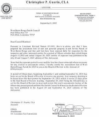 As Introduced by the West Baton Rouge Parish Council At The Regular Meeting of August 14, 2025 And Adopted on September 25, 2025
