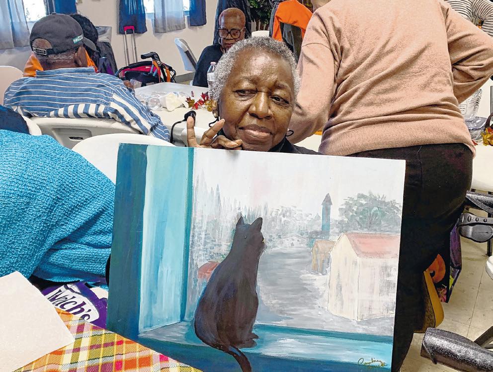 Lillian Hales is the winner of the painting from the art department raffle at the COA Halloween party