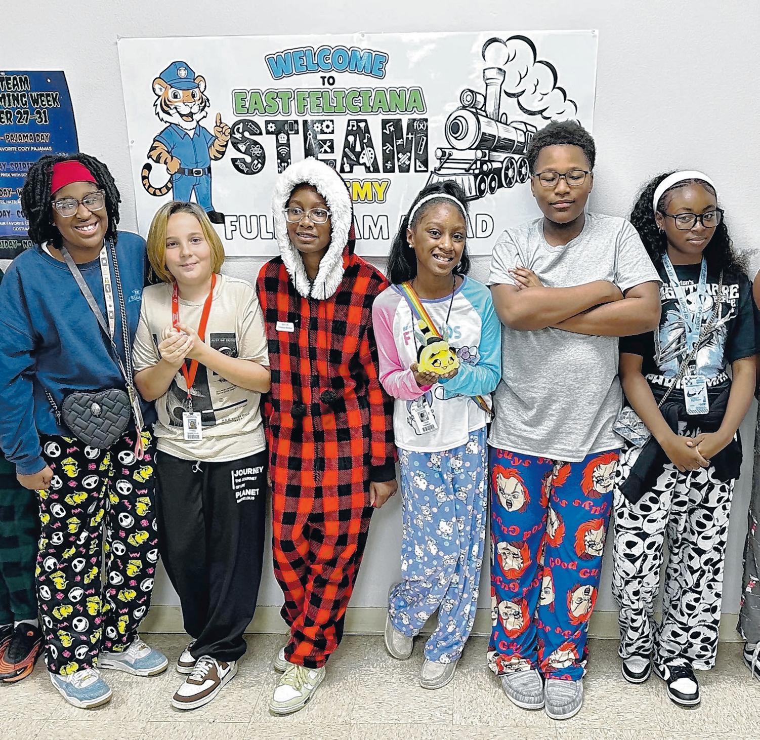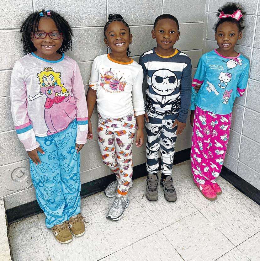 Clinton Elementary Pajama Day participants include Tiana Scott, Kennedi Burton, Akeem Thompson and Eyarah Keller
