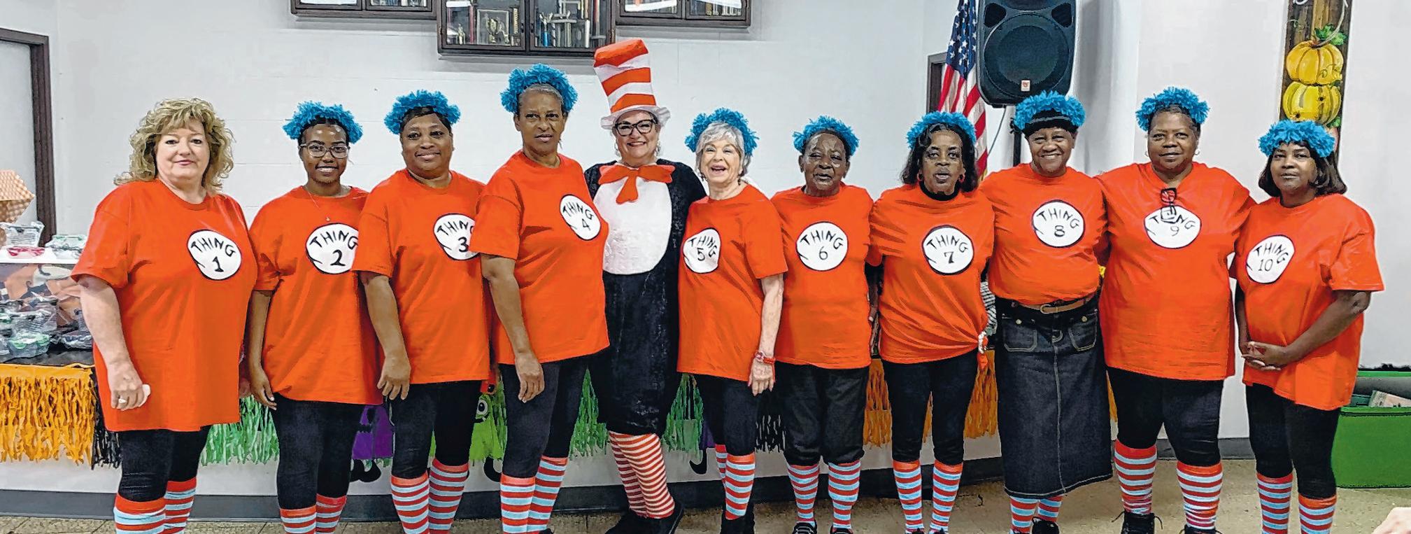 The East Feliciana Council on Aging staff at the 2025 Halloween Party are Patricia Luttrull, Kieanna Wilson,Corettia Maryland, LeeAnn Cannon, Cynthia McManus, Dolly Zimmer, Ida Hunt, Katie McCallister, Dorothy Dunn, Pearl Causey and Lisa Gibbs. Staff not shown are Sallie Green, Phillip Coleman, J,D Dantzler Clyde West and Brenda Norflin.