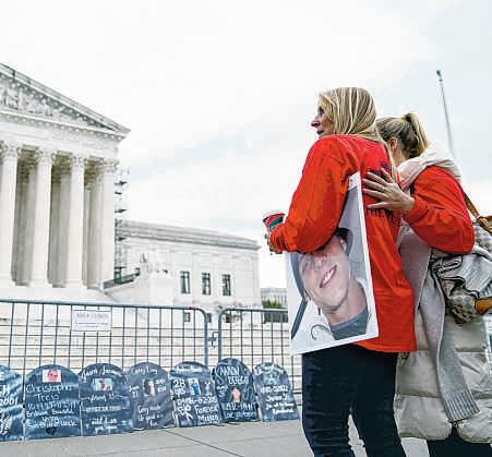 Some protesters carried signs reading, “God’s Love Knows No Borders” and “God Demands Freedom.” Some of them prayed. The crowd numbered about 300 before it began to disperse