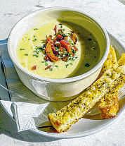 The relaxed patio at French TruckCoffee is perfectfor a SaturdayorSundaymorning treat. Orderyour favorite cappuccino, cortado, latte, chai or matcha and pairit witha breakfast biscuitor croissant sandwich. For lunch, the coffeeshopoffers sandwiches, soup andsalad Visit frenchtruckcoffee.com.