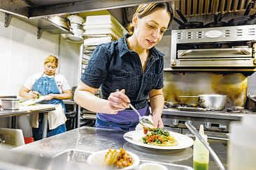 Once the pierogi wereplated and brought to the table, Zemanick returned to the kitchen, whereshe and her team were sorting and chopping the ingredients as they prepared for yet another busy night.