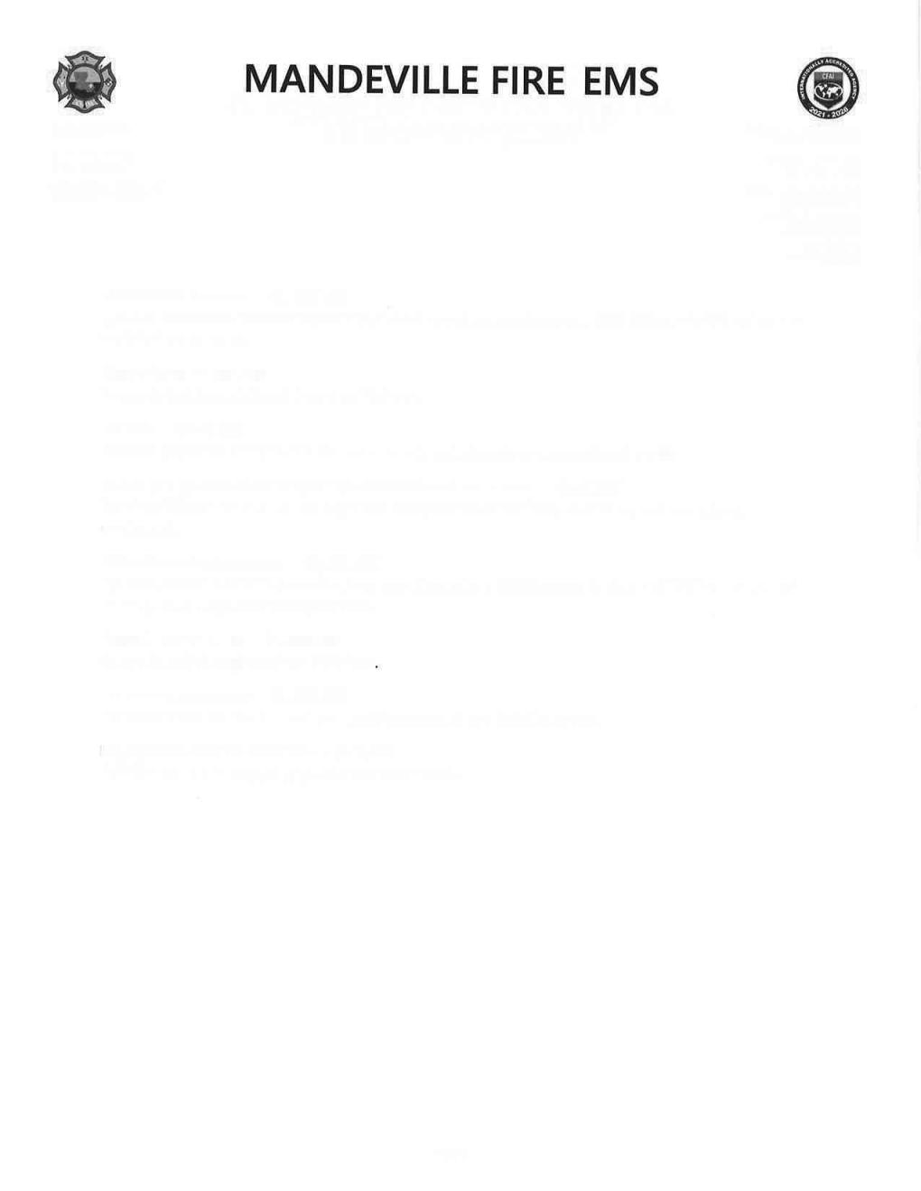 tion: Girod St (See Attached Map) Ap‐proval Requests: Map Approval Con‐tingent Upon: Cer‐tificateofInsurance, Coordination with MPD, Coordination with Public Works (Councilwoman Lane District3) 5. Approval of the Special Event and Alcohol Permit for the Junior League of Greater Covington-“Carnival Couture event to be held on January 16, 2026 11:00am- 2:00pm Location: Fleur De Lis Center (Private Event) Approval Requests: Approval to apply for ATC Permit Contingent Upon: ATC Permit (Councilwoman Lane,District3) 6. Approval of 2026 Council Meeting Dates (CouncilmanZuckerman AtLarge) 7. Approval of Liquor LicenseCourtyard Bistro (Councilman Vo‐geltanz District2) 8. Approval of Change Order No 1 for the Mandeville Lakefront Wetlands Restoration (Berm) project to increase contract cost $2,612.50 for the use of a modified grass mix and to in‐crease the contract time 50 calendar days due to the ac‐ceptance of bid al‐ternate no.1for the marsh creation scope of work (Councilman Zuck‐erman,At-Large) 9. Adoption of Res‐olution 25-56: A RESOLUTION AUTHORIZING THE MAYOR OF THE CITY OF MANDEVILLE TO EXECUTEA‐MENDMENT NO 1 TO THE DEBRIS MONITORING CONTRACT BE‐TWEENTHECITY OF MANDEVILLE AND TETRA TECH, INC. AND PROVIDING FOR OTHER MATTERS IN CONNECTION THEREWITH (Councilman Zuck‐erman,At-Large) 10. Adoption of Resolution 25-57:A RESOLUTION AUTHORIZING THE MAYOR OF THE CITY OF MANDEVILLE TO EXECUTE AMENDMENT NO. 2 TO THE PROFESSIONAL SERVICES AGREEMENT BE‐TWEENTHECITY OF MANDEVILLE AND HIGH TIDE CONSULTANTS, LLC FOR OLD GOLDEN SHORES DRAINAGE IM‐PROVEMENTS AND PROVIDING FOROTHERMAT‐TERS IN CON‐NECTIONTHERE‐WITH (Councilman Vogeltanz District 2) UNFINISHED BUSINESS: NEWBUSINESS: 1. Deliberation and Possible Appoint‐ment of Parks and Parkways Commit‐tee Member. (Coun‐ cilman Zuckerman, At-Large) 2. Adoption of Res‐olution 25-58: A RESOLUTION ACCEPTING THE BIDFORTHE2025 ASPHALT MAIN‐TENANCE CON‐TRACT AND AU‐THORIZING THE MAYOR TO EXE‐CUTE A CON‐TRACT WITH THE APPARENT LOW BIDDER, DONAHOE CON‐STRUCTION, LLC AND PRO‐VIDING FOR OTHER MATTERS IN CONNECTION THEREWITH (Councilman Zuck‐erman,At-Large) 3. Adoption of Res‐olution 25-59: A RESOLUTION ACCEPTING THE BID FOR THE RE‐HABILITATION OF LIFT STA‐TIONS 19 (WEL‐DON PARK) AND 32 (SHADOWS) AND AUTHORIZ‐ING THE MAYOR TO EXECUTE A CONTRACT WITH THE AP‐PARENT LOW BIDDER, SUB‐TERRANEAN CONSTRUCTION, LLC AND PRO‐VIDING FOR OTHER MATTERS IN CONNECTION