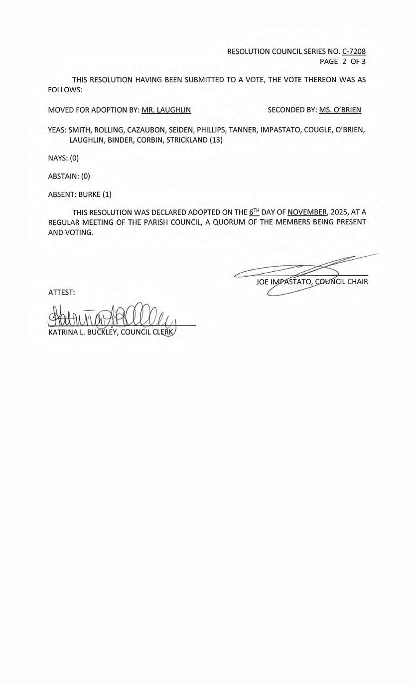 Motion by James Braud, second by Deborah McCollum to accept with the legal edits as at‐tached Final Resolution: MotionCarries Yea: Matthew E Greene, Adaline Rutherford, Kalinda Fauntleroy Bran‐don Harrell, Amanda Martin, Is‐abelle B Moore, Gia R Baker, Deborah McCollum, Tammy Lamy, Michelle Hirstius, James Braud, Dennis S Cousin, Michelle RuffinoGallaher