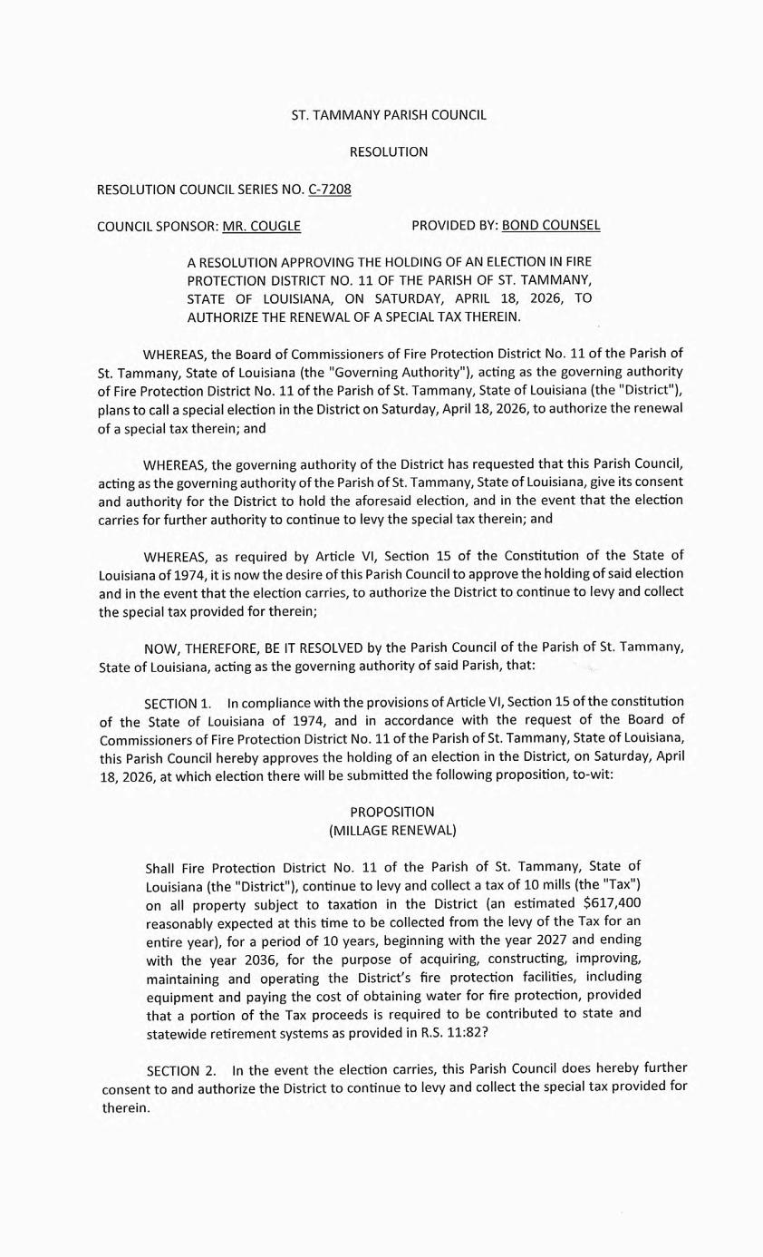 The 34.95-mill tax is for 20 years and will bring in around $3.46 million annually to pay for fire protection services in the district. In east-central St. Tammany voters in Fire Protection District No. 7 renewed the district’s 5.21-