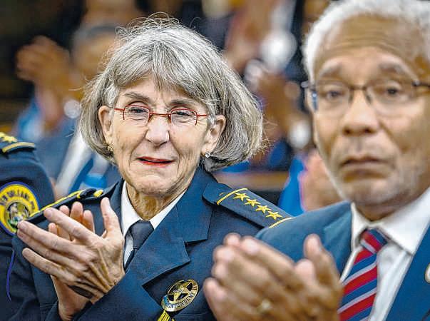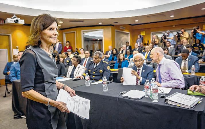 U.S. District JudgeSusie Morgan makes her waytoher seat after speaking during agathering marking theend of theNew Orleans PoliceDepartment consent decree at Loyola University LawSchool on Wednesday