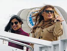 First ladyMelania Trump, right, and second ladyUsha Vance arrivein Richlands, N.C.,onWednesdayenroute to Camp Lejeune.