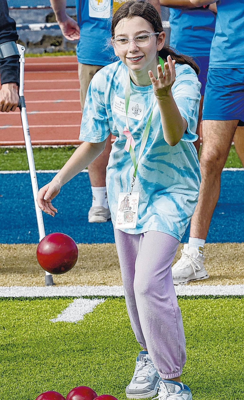Bria Audibert tosses her bocce ball at the 10th annual High School Students with Exceptionalities Bocce Games at Covington High School on Nov. 18