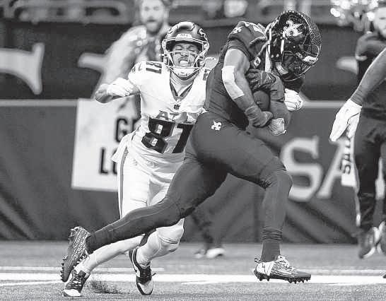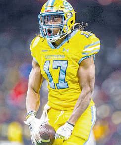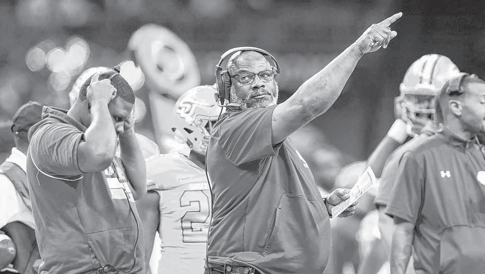ABOVE: Grambling State Tigersrunning back Tony PhillipsJr. tries to avoid a tackle by Southern UniversityJaguars during thesecond half of the52ndannual Bayou Classic game at Caesars Superdome in New OrleansonSaturday LEFT: Southern University Jaguars fans celebrateafter atouchdownagainst theGrambling State Tigers during Saturday’sgame.