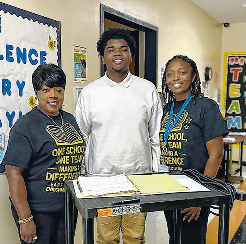 East Feliciana Parish School Board Vice President Lillian Drake, left, visits East Feliciana Enrichment Academy on Oct 3. With her are Student of the Month Roosevelt Dunn Jr center and teacher Jherica Kelly