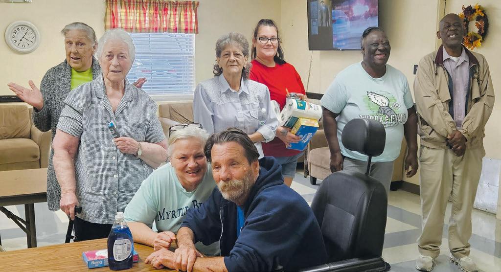 From left, Vivian Canoy, Peggy Pittman, Patricia Fourrier, Darrell Fourrier, Karen Law, Christina McGuire, Linda Stevens and Wilbert Riley attend the November Bingo and Birthday Party at Assisi Heights Apartments in St. Francisville.
