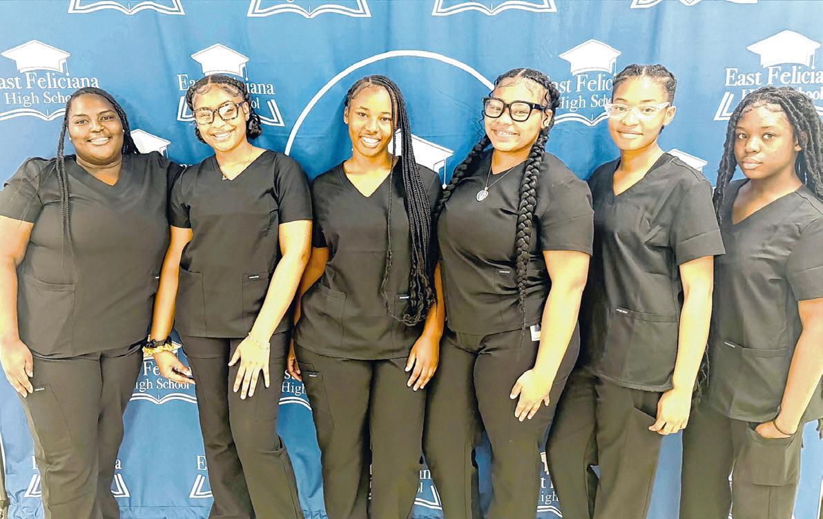 East Feliciana High School is partnering with Baton Rouge Community College sot students can work toward becoming certified nursing assistants. Students participating in the program, from left, include Joshlyn Spears, Tauryeonna Hamilton, Aaliyah Haynes, Dy’Sheanna Brown, De’Myria Thomas and Malayasia Clark