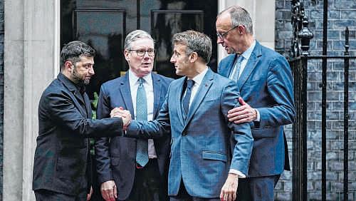 LONDON President Volodymyr Zelenskyy met British, French and German leaders in London on Monday in a show of European support for Ukraine at what they called a “critical moment” in the U.S.-led effort to end Russia’s war in Ukraine.