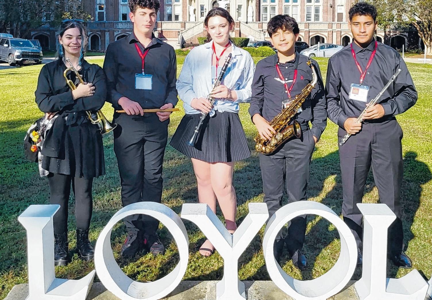 CHALMETTE HIGH SCHOOL: Five students from Chalmette High’s Talented Music Program were selected to perform in the Big Easy Band Festival at Loyola University in November. Samantha Thornton, Chandler Melton Arabella Alphonso, Elbin Chavez Escobar and Kevin Gonzales attended educational seminars, masterclasses with Loyola music faculty, recitals, concerts and performances. The