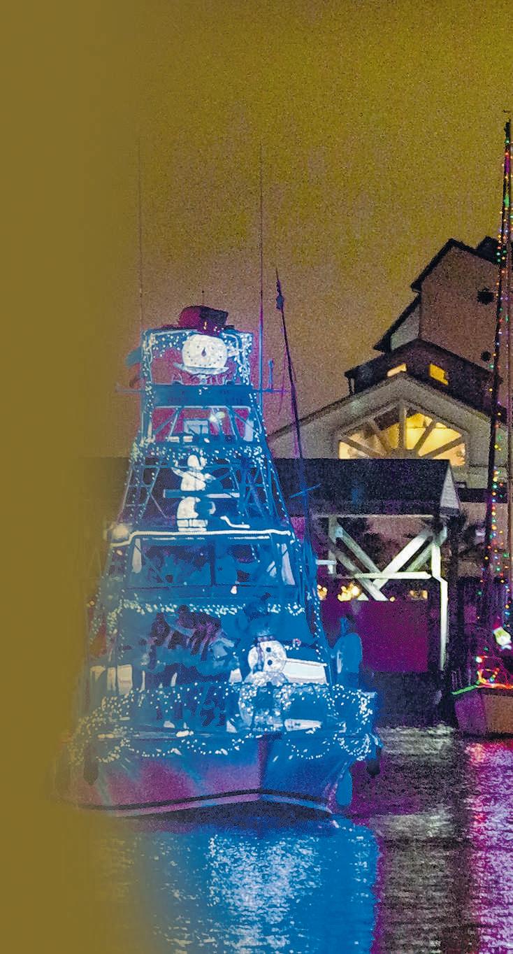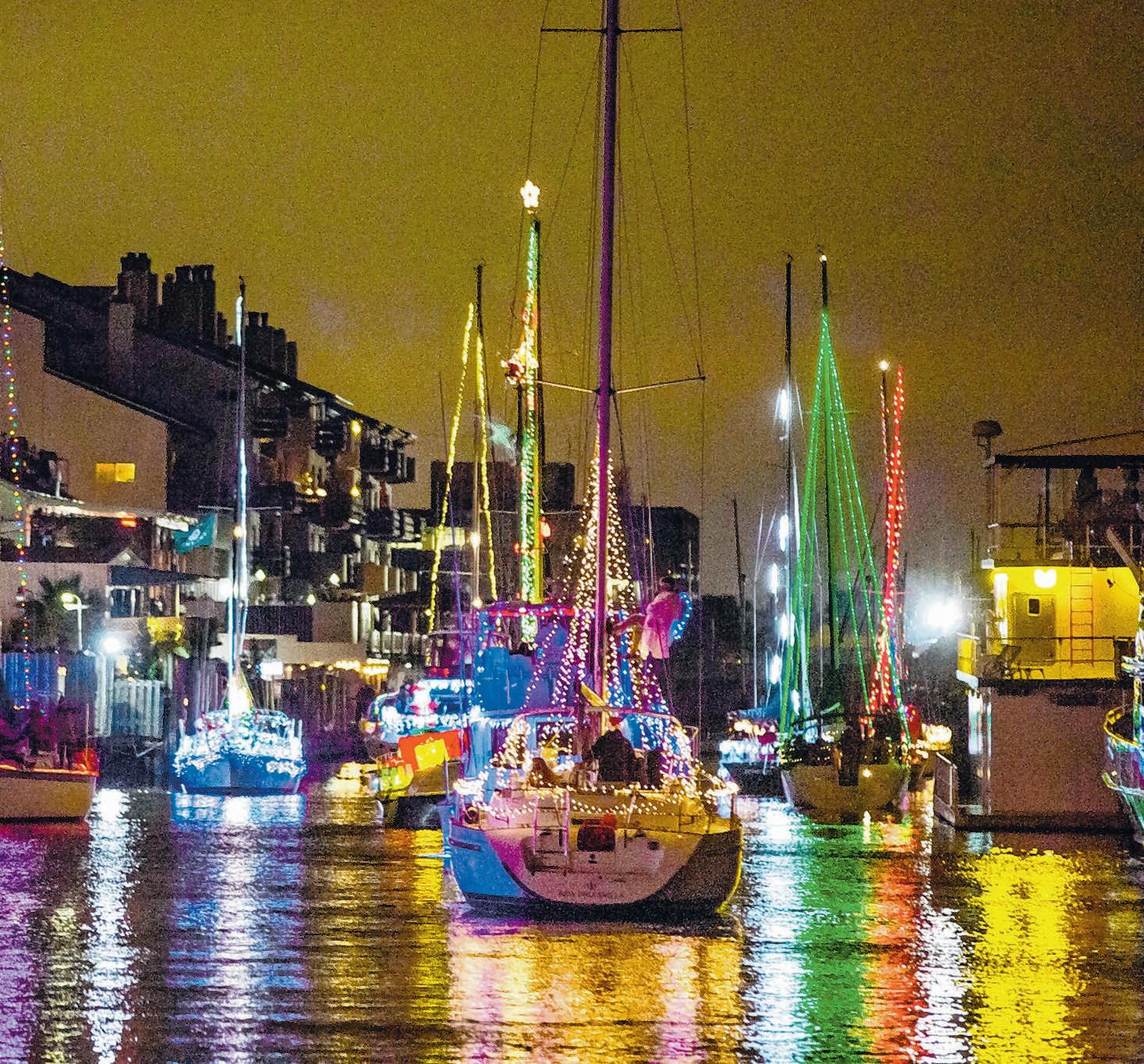 Imagine afleet of as many as 50 smallsail andpower boats,plus jet skis, paddleboards and such, allfestooned with twinkling Christmas lightsand inflated holiday decorations.