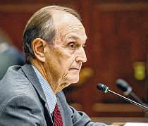Louisiana Supreme Court Chief Justice John Weimer gives a statement to the Judicial Compensation Committee during a meeting on judicial raises in House Committee Room 3 at the State Capitol in Baton Rouge on Monday.