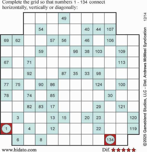 directions: Complete thegridso that numbers 1–132 connect horizontally, vertically or diagonally