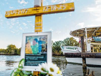 Awooden cross memorial on pilings has been placed near where deckhand Walter Francisco Cerrato Cabrera died in late December after he jumped