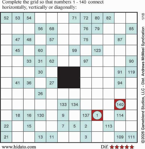 directions: Complete thegridso that numbers 1–132 connect horizontally, vertically or diagonally