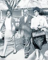The Rev.T. J. Jemison, pastor of Mt. Zion Baptist Church, accompanies MaryBriscoe, left,and Sandra Ann Jones, twoSouthernUniversity students released on bond