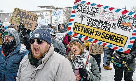 Three hotels where protesters have said Immigration and Customs Enforcement officers were staying in the area stopped taking reservations Sunday In a diverse neighborhood where immigration officers have been seen frequently, U.S. postal workers marched through on Sunday, chanting: “Protect our routes. Get ICE out.”