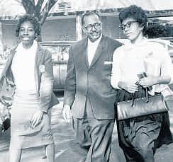 The Rev.T. J. Jemison, pastor of Mt.Zion Baptist Church, accompanies MaryBriscoe, left,and Sandra Ann Jones, twoSouthern University students released on bond after being jailed fortheirpartinsitdown demonstrations against segregated lunch counters in 1960.