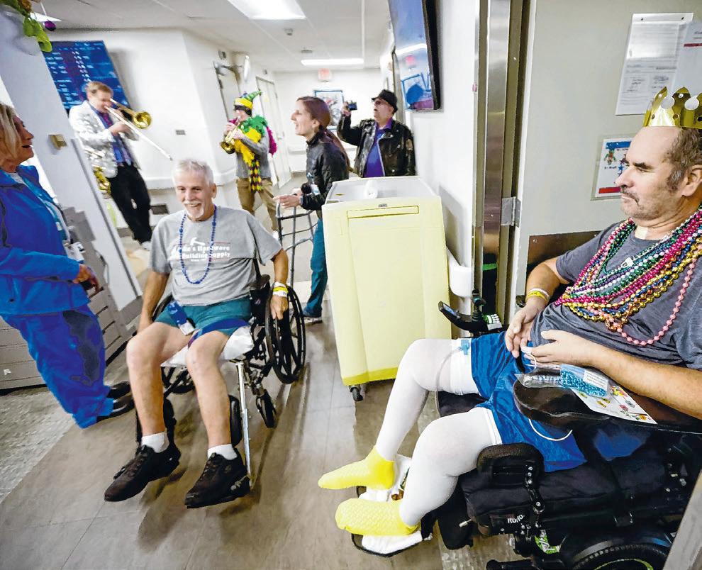 and the rehab staff enjoys it as well,” Folse said. “Many patients are from here, so they know all about Mardi Gras and the parade brings back many good memories for them. We also have patients who don’t live here and have never experienced Mardi Gras. They love the music and getting all the throws.