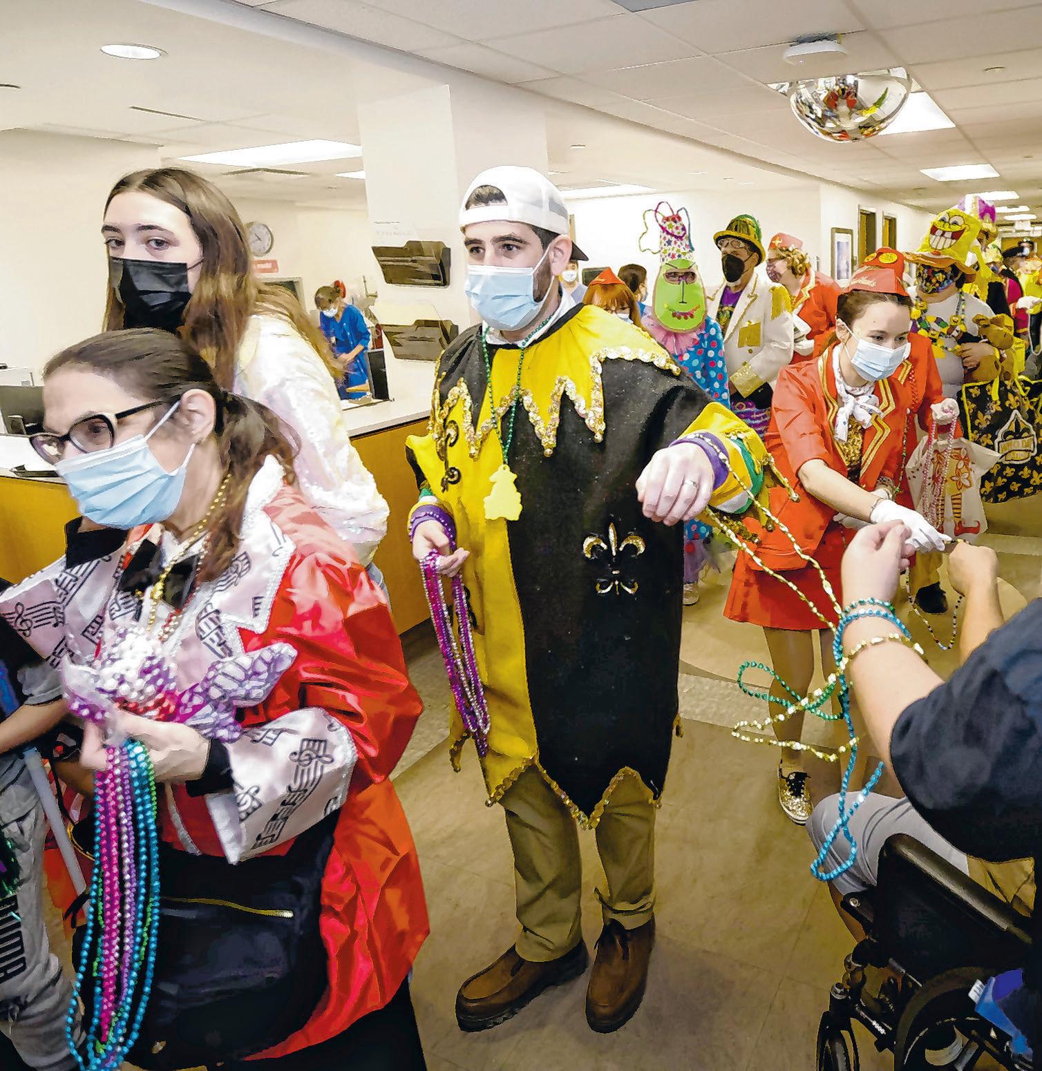 Revelers bring beads and good cheer to patients