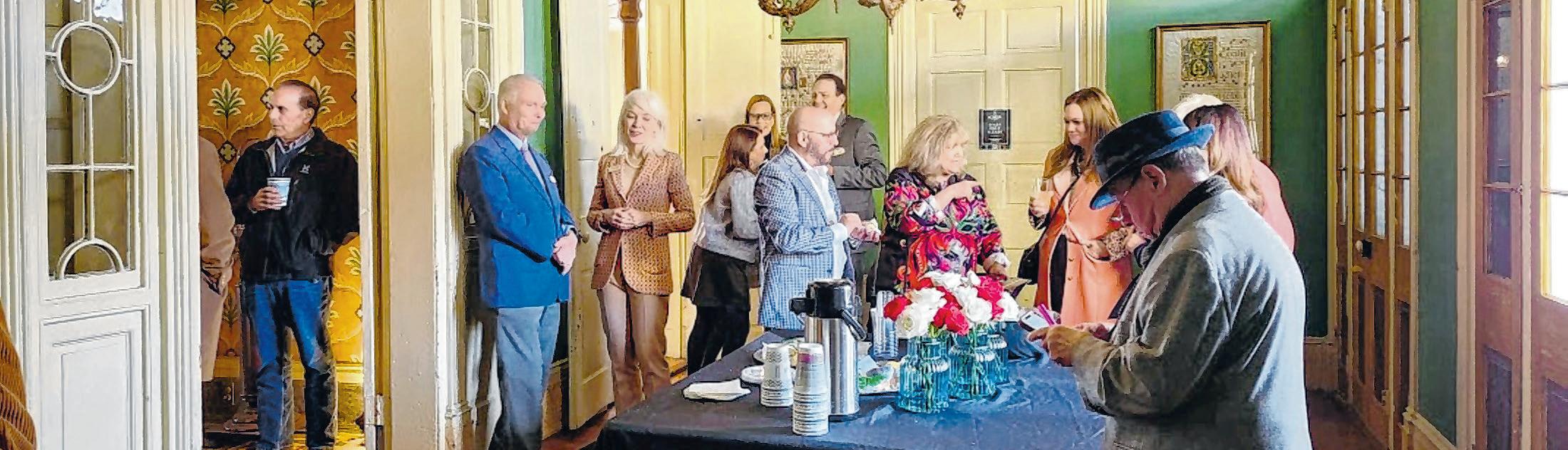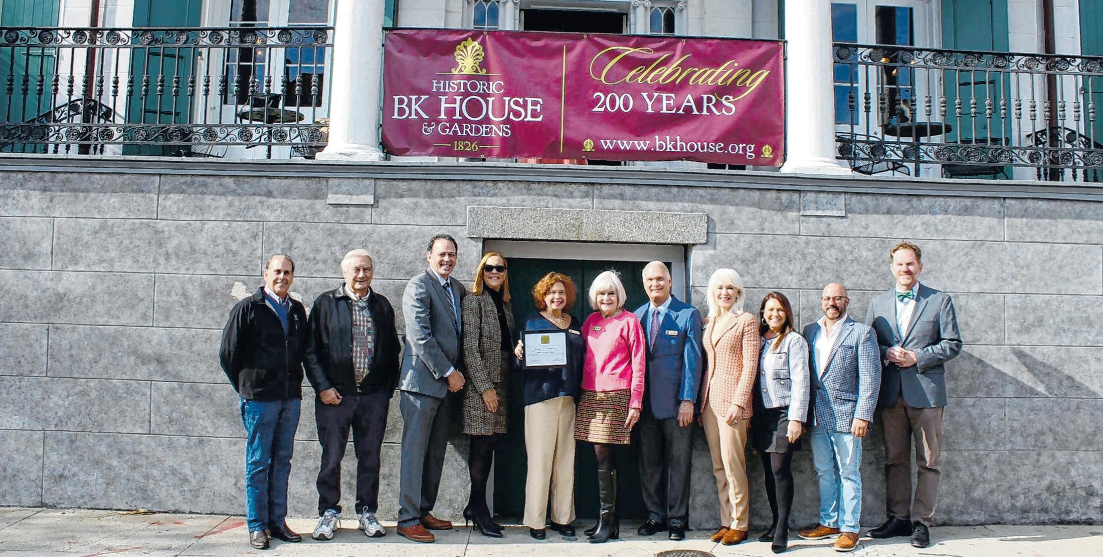 The Historic BK House & Gardens held a ribbon-cutting ceremony Jan. 12 to kick off its BK bicentennial year. From left are Joey DiFatta, bicentennial committee; Robert Cangelosi, bicentennial committee; Hank Bart, BK House & Gardens trustee and bicentennial committee chair; Wendy Lodrig Bart, bicentennial committee chair; Jen Gick, executive director, BK House & Gardens; Sandra Dartus, BK House & Gardens board president; Hal Williamson, BK House & Gardens trustee;
