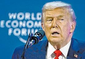 ASSOCIATED PRESS PHOTO By GIAN EHRENZELLER President Donald Trump speaks during the meeting of the World Economic Forum in Davos, Switzerland, on Wednesday.