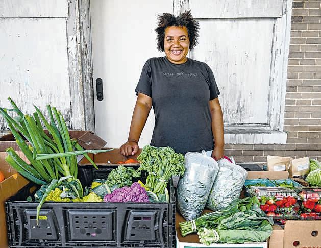Barcelo Gardens owner Ashley Webb stands in front of her booth of fresh vegetables during the Barcelo Gardens farmer’s market in Napoleonville on Jan. 9.