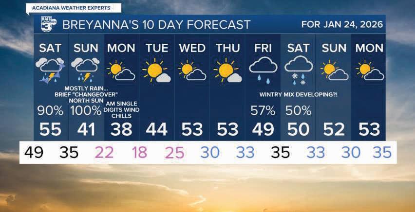 that could cause power outages and road closures,all of Acadiana should prepare for record-breaking, pipebursting cold temperatures Sunday night into Monday morning and againMonday nightintoTuesday morning, said Donald Jones, ameteorologist with theNational Weather ServiceinLakeCharles.