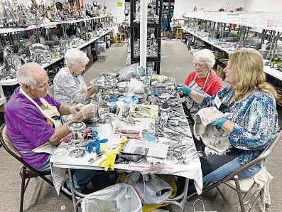 Jess Shaffett, fromleft, Marilyn Grake,Mae Shaffettand Tara Radoni polish silver until it shines at Attics Trash andTreasure aheadofthe annual Baton Rouge sale