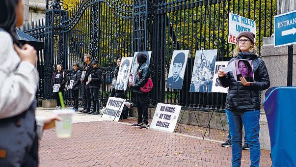 She has found her voice, she said, in silent vigils. On either side of Columbia University’s main entrance on Broadway and 116th Street in Manhattan, Lynn, 74, stands with a large group dressed in black. Some of the group hand flyers to the steady foot traffic in and out of the campus. Others hold a steady gaze into the middle distance. On this day, Lynn clutches a black-and-white portrait of Yunseo Chung, an international student from Korea detained by immigration agents in March “It is solemn and elegant,” Lynn said. “It is a direct statement, but because it is silent it is very powerful.”