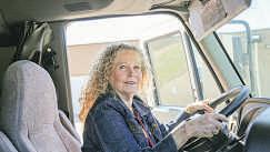 On this particular morning, his front-seat companion is 97-yearold Elizabeth Wright, a spry and witty resident of a local senior home who has been riding with him for many years.