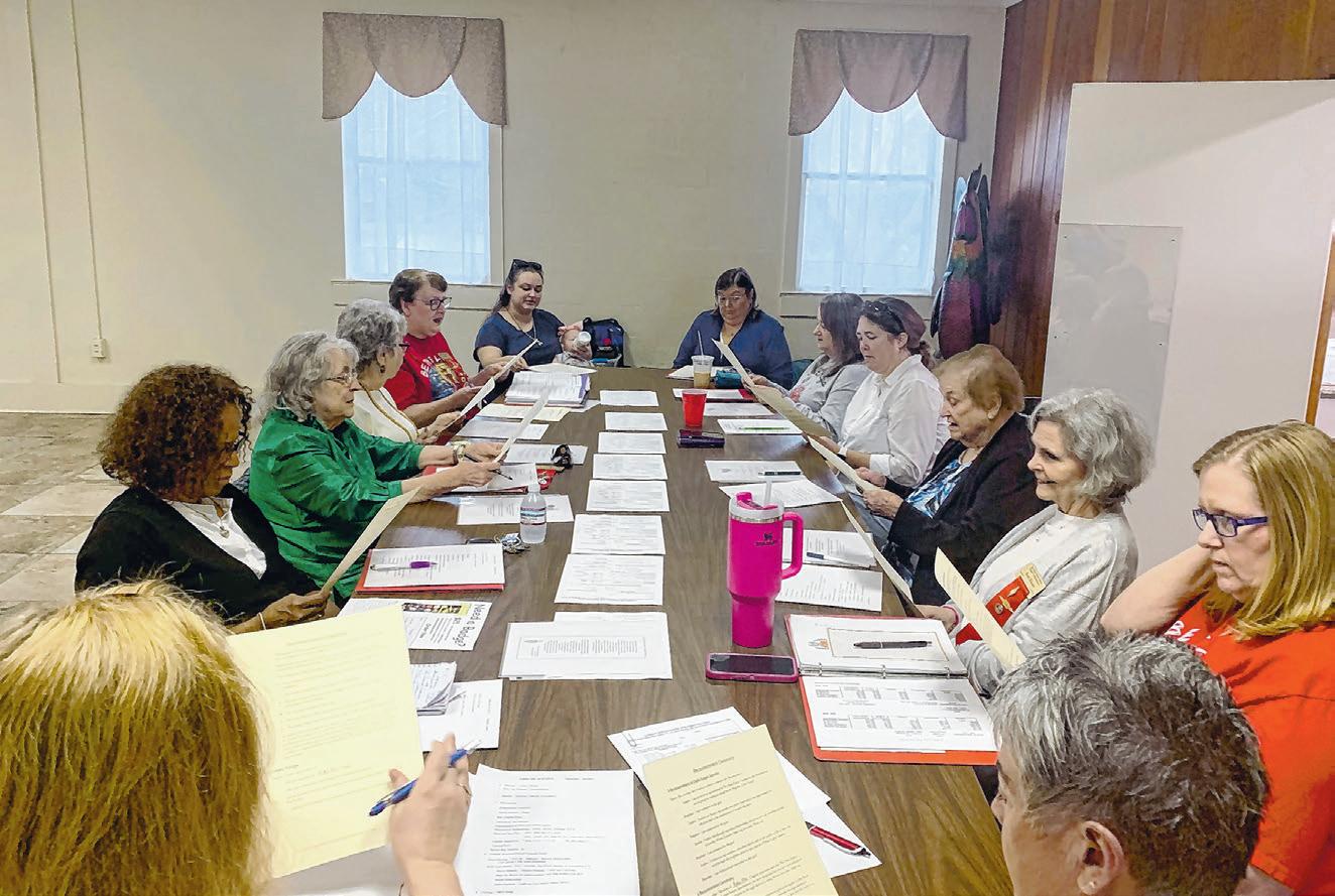 President Beth Box led members in addressing much of the paperwork — including annual reports, the reviewing of recent activities, consideration of upcoming awards and noting items on the local and state calendar — before they moved on to the article review/program.
