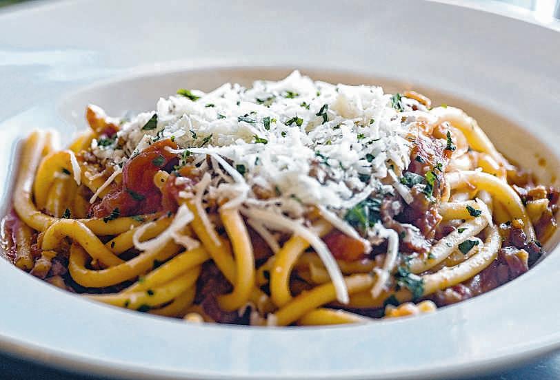 Sally Davis’ favorites include the chicken parmesan —adish with breaded chicken breast, pomodoro, bucatini and mozzarella —and the risotto and Gulf shrimp. There’salso the pork Mila-