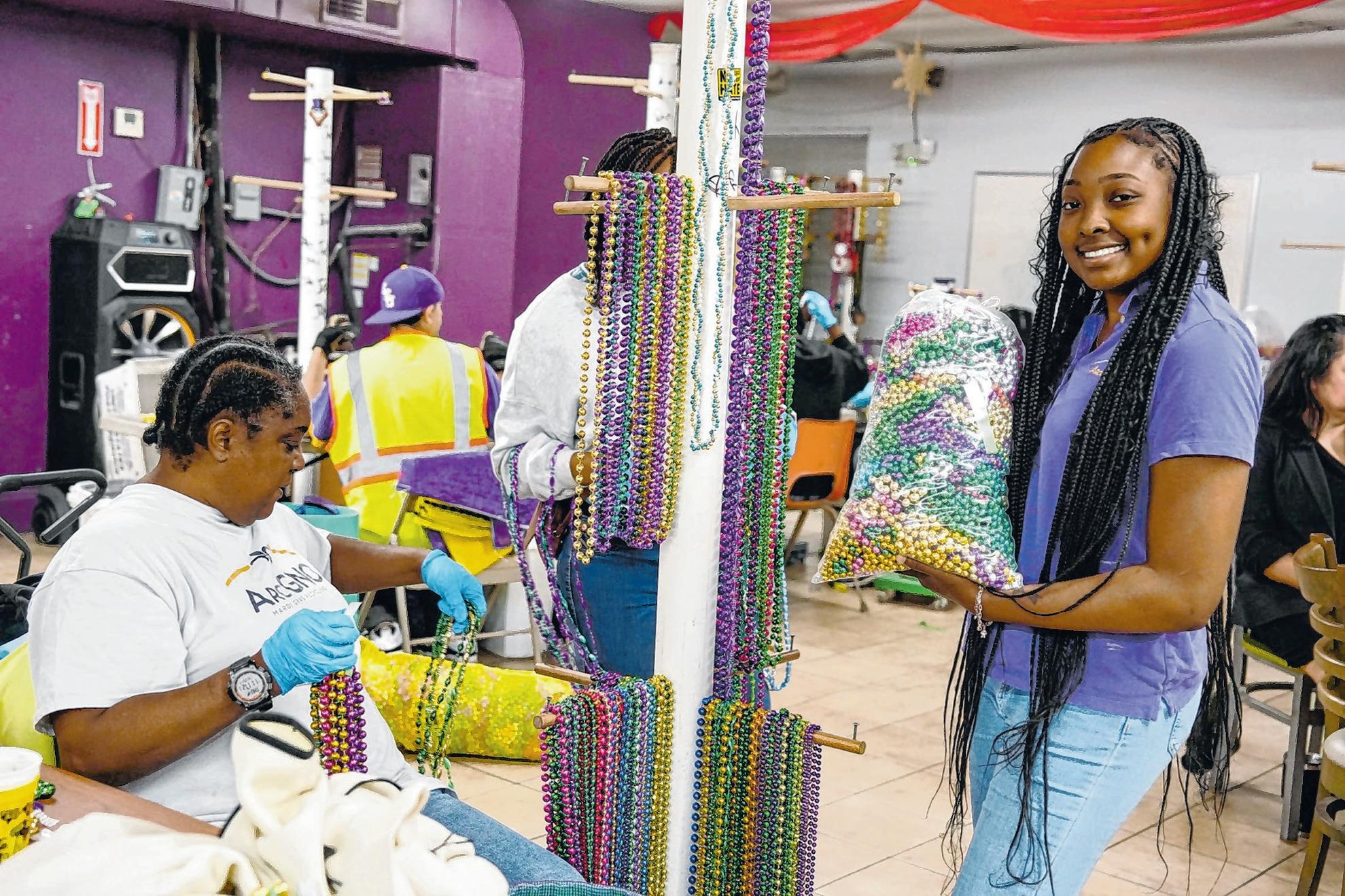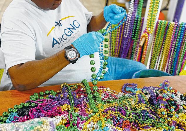 tor of Arc. “The beads are sorted, banded together and then packaged in crawfish sacks for sale in bulk for krewes to buy, with about 72 dozen in each sack.