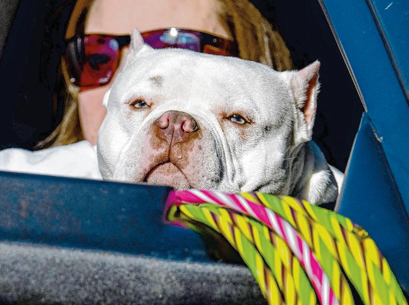 A dog rides in a truck during the Krewe of Denham Springs Mardi Gras parade.