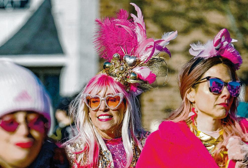 A member of the Flamingeauxs marches in the parade.