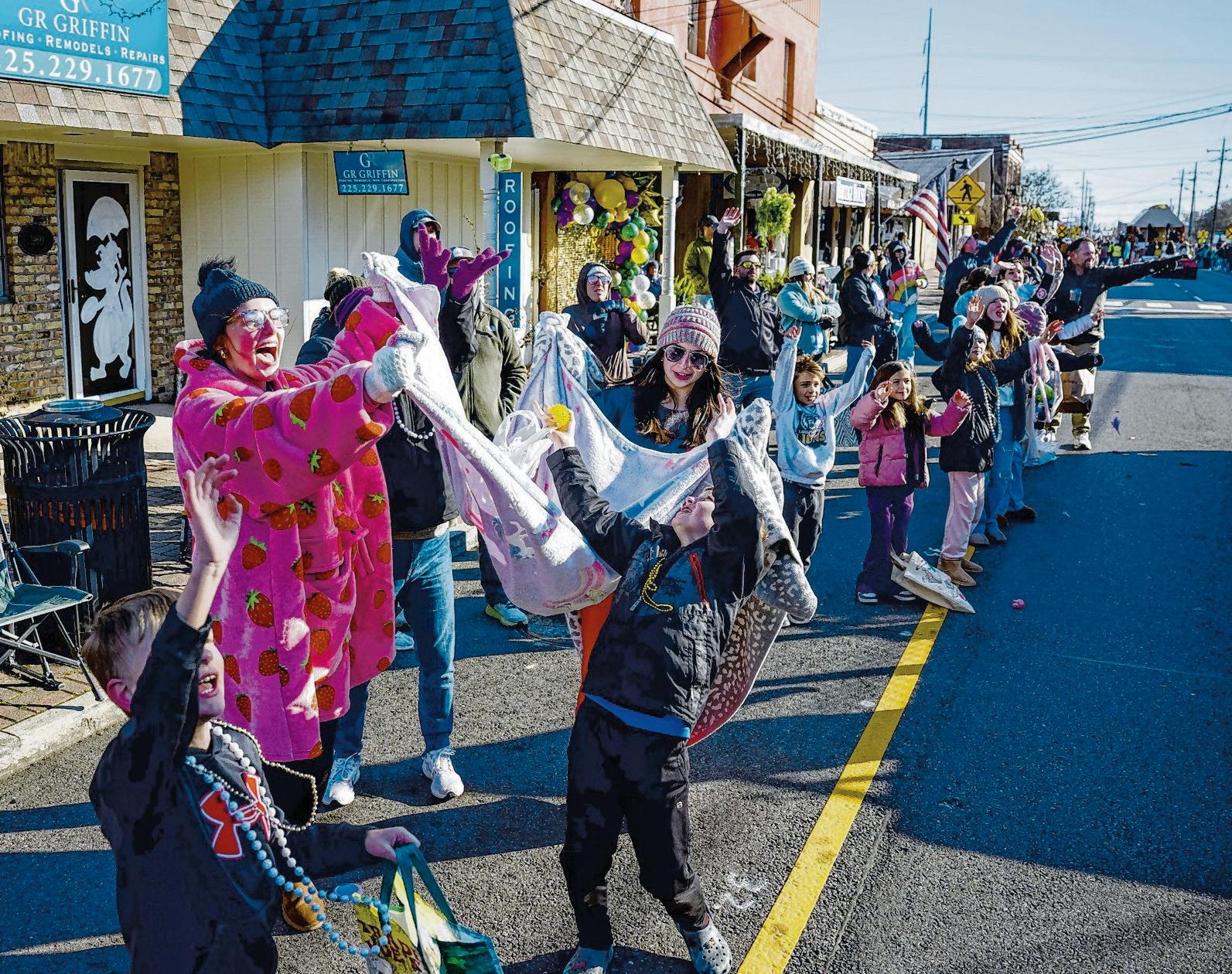 Beads, rubber balls and hula hoops fly during Krewe of Denham Springs parade