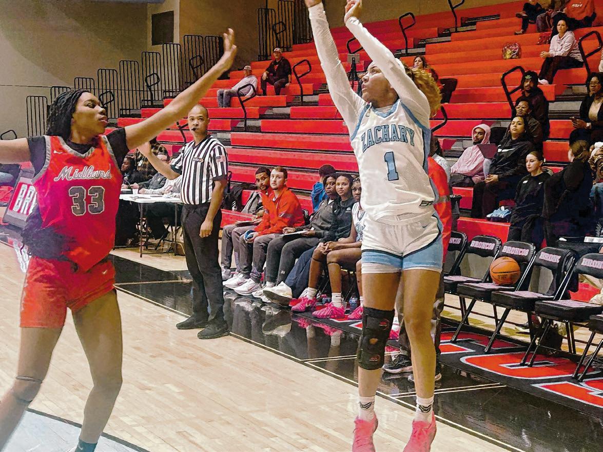 Zachary High’s girls head basketball coach Tami McClure texted me the night before the Broncos home game against Midland on Jan. 28. Though it was a nondistrict game against an out-of-state opponent, I had already made plans. What neither I nor Ava Raymond knew (until McClure texted me) was that on the previous Friday against Oak Hill, Raymond scored her 2,000th point as a Bronco. She received that recognition before the Midland game. Raymond is also a candidate for the Louisiana Gatorade player of the year in girls basketball. Coming into the Midland game, the Lady Broncos have put together an impressive 21-3 record and is currently ranked second in the Non-Select Division I power rankings.