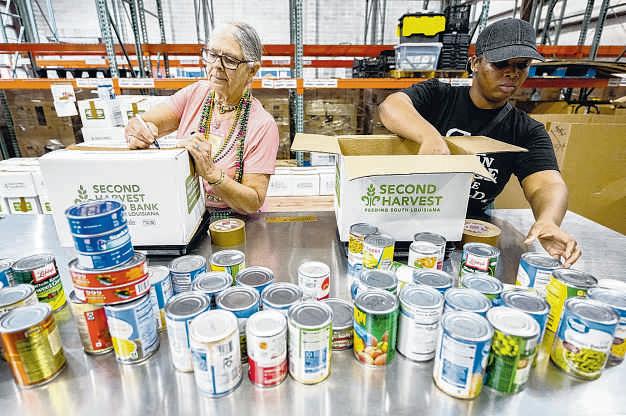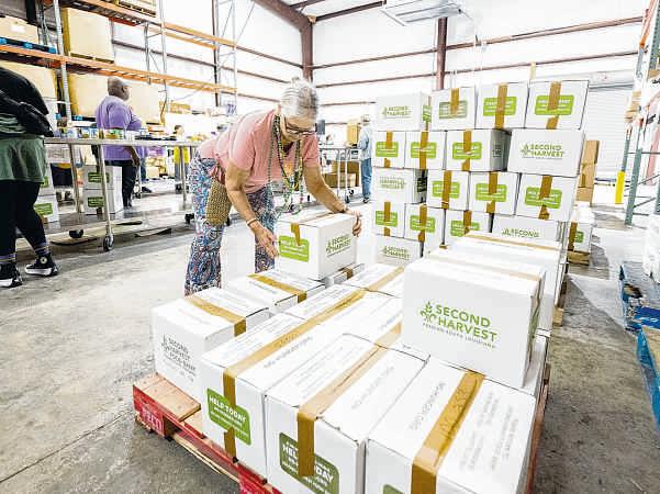 As “Mardi Gras Mambo” wafted through the Second HarvestFood BankLafayetteDistribution Center,volunteers tapped their feet and repacked donateditems intoemergency grocery boxes.